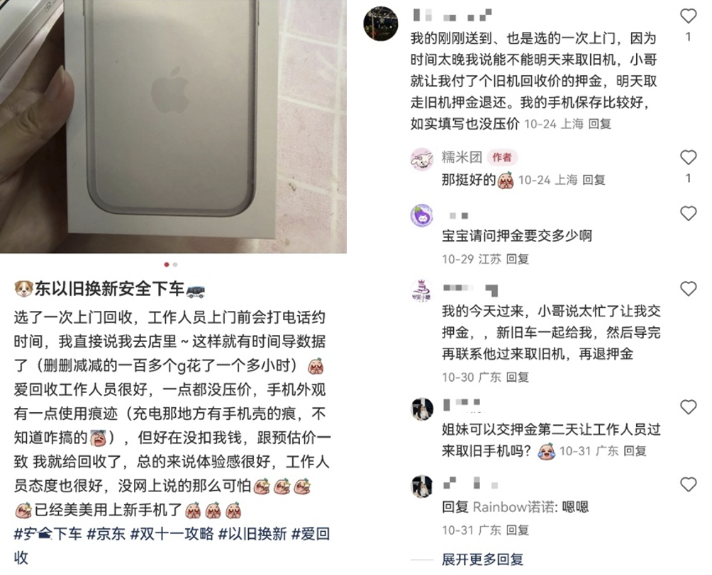 相比之下,部分平臺嘗試通過流程重構提升回收透明度。例如,京東針對iPhone推出的“送新取舊同步”服務,在流程設計上減少了用戶的信息不對稱風險。該模式不僅實現了新機配送與舊機回收的無縫銜接,還充分考慮了iPhone用戶的數據遷移需求:用戶可選擇暫付押金保留舊機,待資料轉移完成后再安排工程師上門取件。在回收環節,工程師會當面檢測iPhone外觀與功能,現場確認最終價格,整個評估過程透明可見。若用戶對價格不認同,可當場取消交易,設備始終不離開用戶視線,有效避免了“私下拆機、事后壓價”的風險。不少用戶反饋,只要在提交時如實描述iPhone狀況,京東現場評估的價格通常與系統預估基本一致,不壓價,換新過程更加安心、順暢。