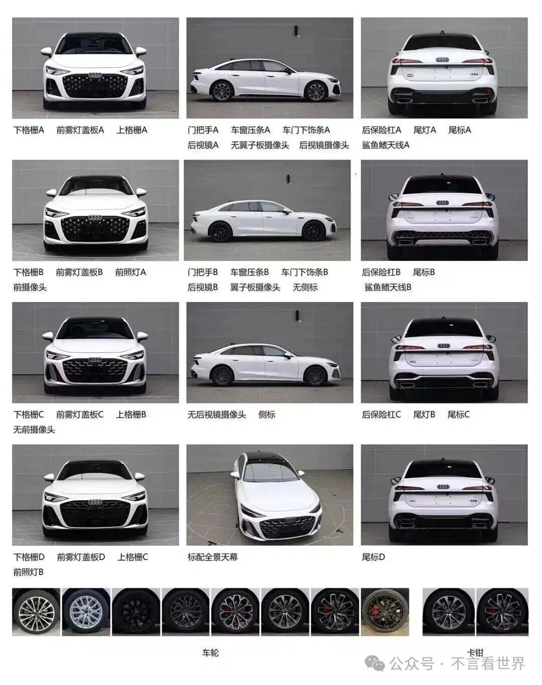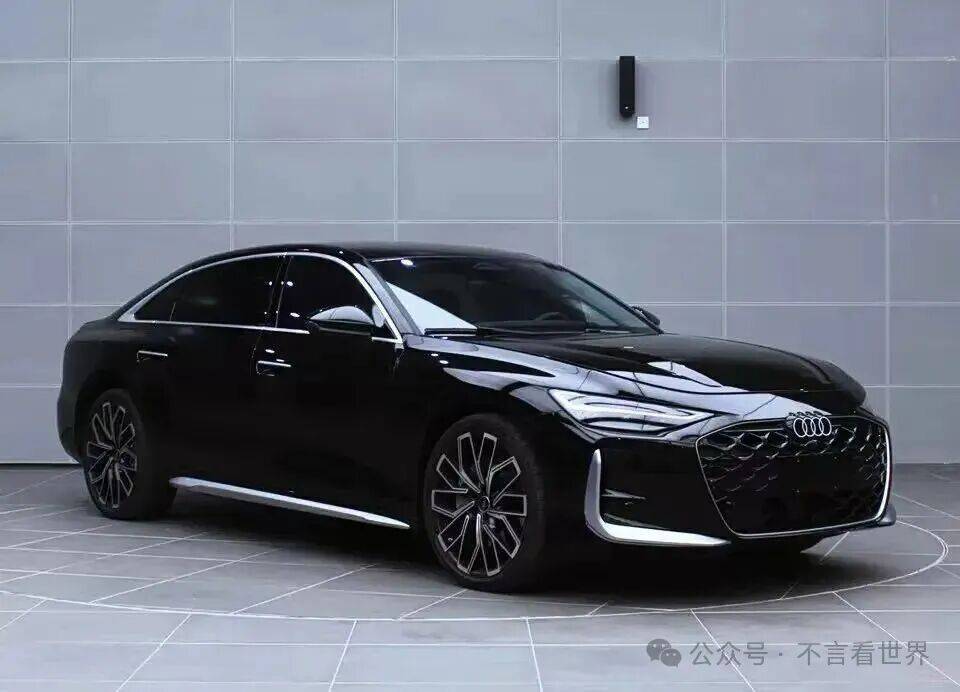 外觀設計迎來顛覆性革新,徹底擺脫傳統行政座駕的穩重形象。前臉采用熏黑蜂窩狀進氣格柵,尺寸較現款擴大30%,奧迪四環標識上移與格柵上沿無縫銜接。倒梯形LED矩陣大燈組集成動態轉向功能,日間行車燈呈現反向"L"形光帶。前保險杠兩側的L型金屬飾條與導流槽設計,強化了運動視覺效果。