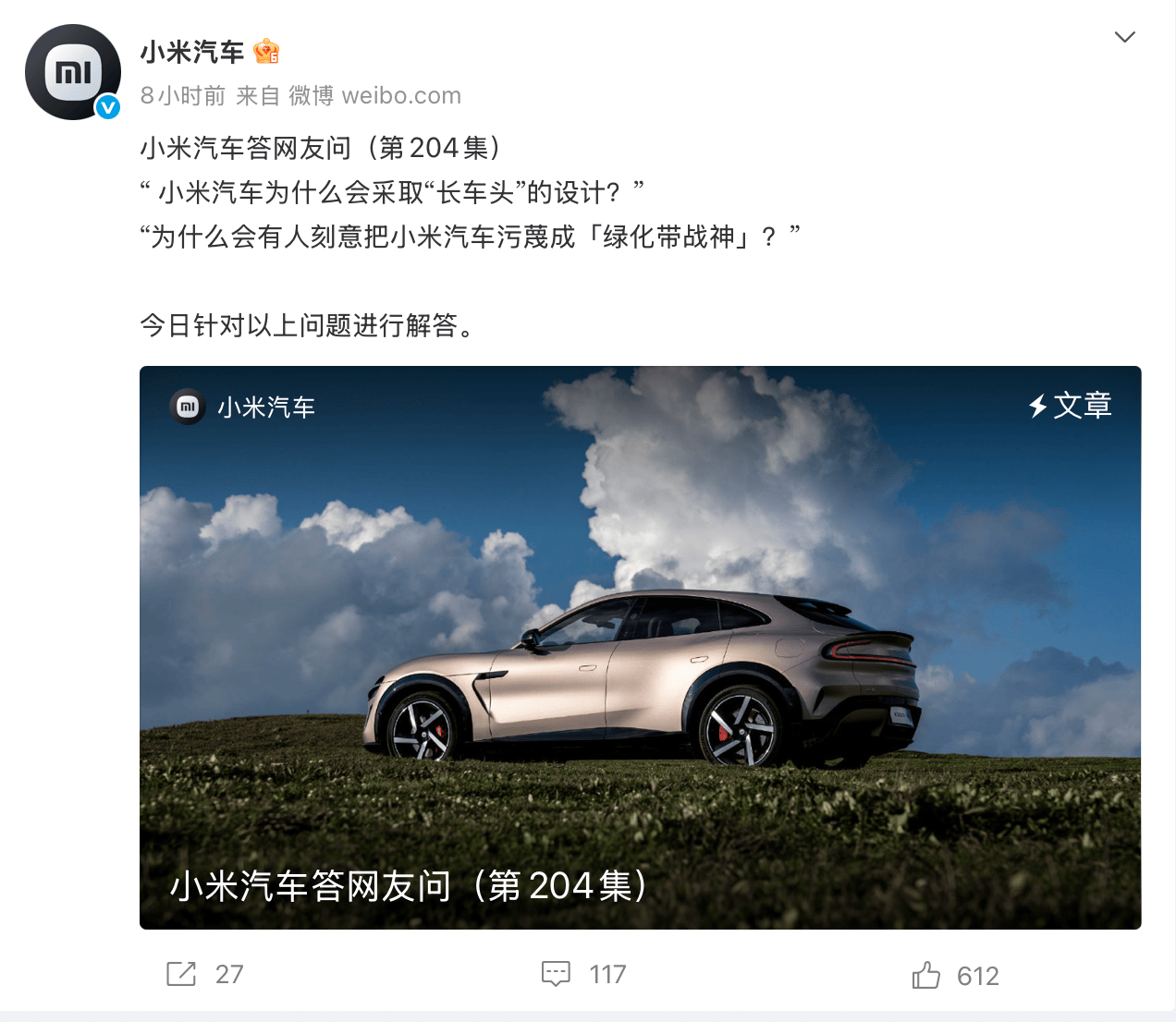 深夜發聲!小米汽車回應“綠化帶戰神”等爭議,超強鋼及安全策略引關注