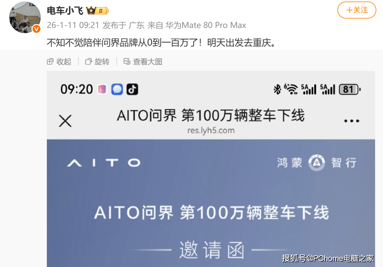 鴻蒙智行AITO問界迎百萬輛整車下線 1月13日重慶見證里程碑時刻