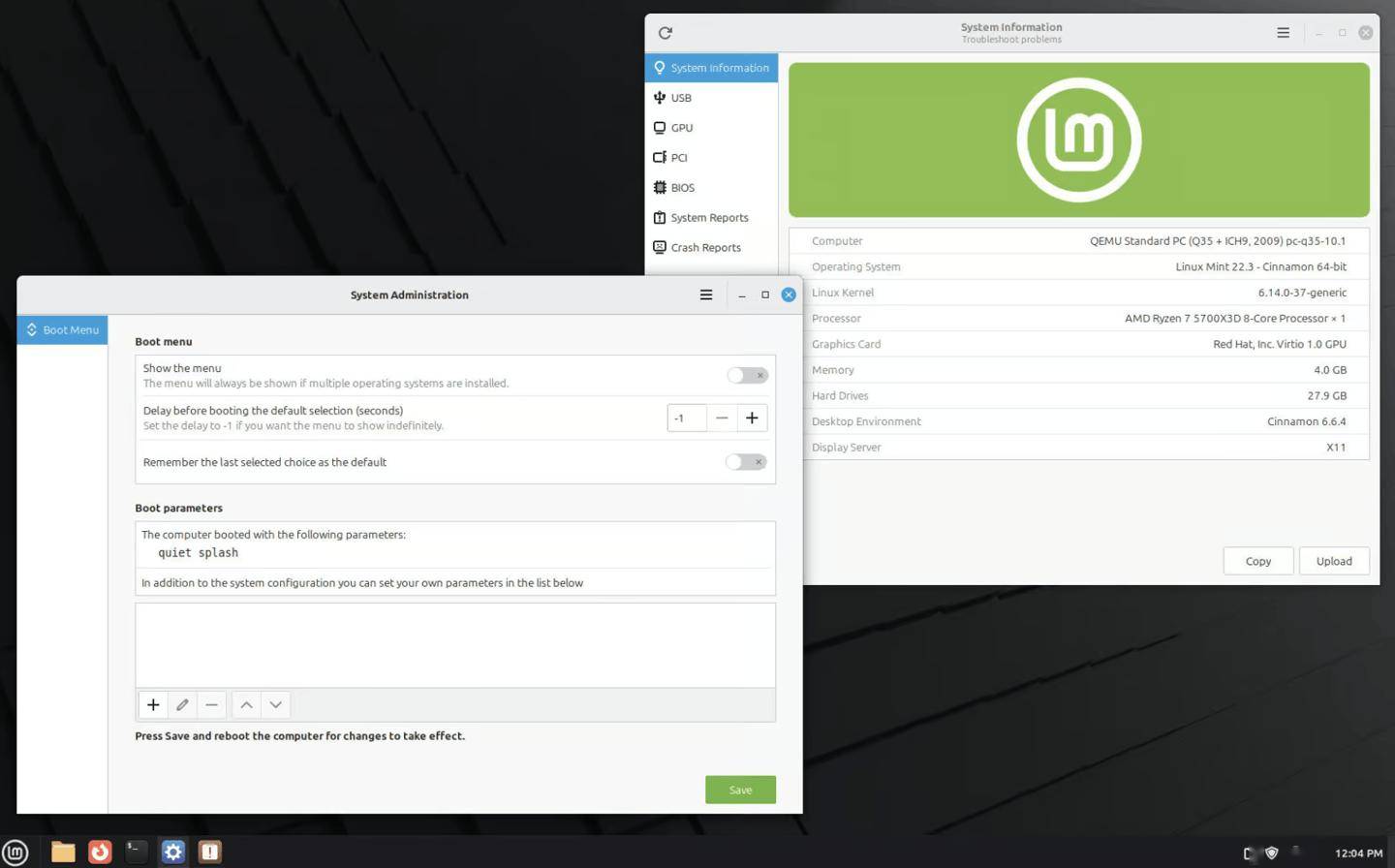 文件管理工具Nemo在此次更新中新增多項實用功能。用戶現在可以暫停正在進行的文件操作并在需要時繼續執行,搜索功能支持正則表達式匹配,模板管理器則被直接整合至右鍵菜單中。系統工具集同樣迎來升級:Timeshift系統快照工具新增備份暫停/繼續功能,Warpinator局域網傳輸工具支持IPv6協議并允許傳輸過程中發送文本消息。系統信息展示工具經過重新設計,可集中顯示硬件配置與驅動狀態,新增的“系統管理”應用則為用戶提供了引導加載器等底層配置的便捷入口。