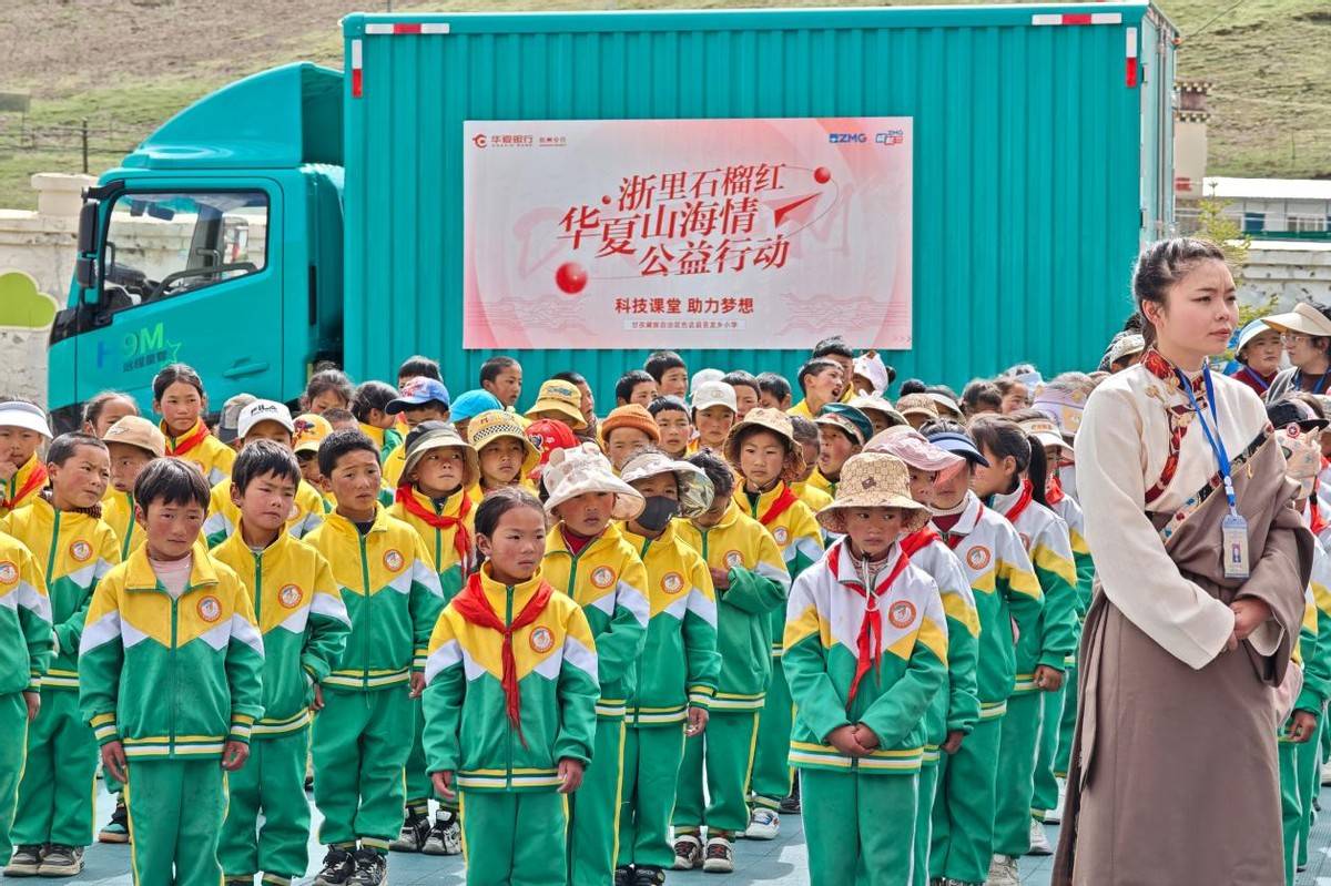 在四川色達亞龍鄉,海拔超過4000米的群山間,一條蜿蜒的公路如同潔白的哈達,將外界與這片純凈的土地緊密相連。一輛綠色涂裝的遠程醇氫電動輕卡——星智H9M,正行駛在這條公路上,車上滿載著送給亞龍鄉小學孩子們的科技禮物:新能源汽車模型、靈巧的機器狗、翱翔的無人機以及充滿未來感的AR眼鏡。這溫暖的一幕,源于一場名為“浙里石榴紅 華夏山海情”的公益行動。遠程新能源商用車集團受華夏銀行杭州分行邀請,攜手杭州多家科技企業,共同走進海拔4500米的雪域高原,為孩子們播撒科技的種子。