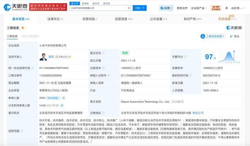 法定代表人雷軍作為小米集團的領軍人物,一直致力于推動小米在科技領域的創新與發展。小米汽車科技有限公司的成立及其后續的一系列動作,均體現了小米在新能源汽車領域的雄心壯志。