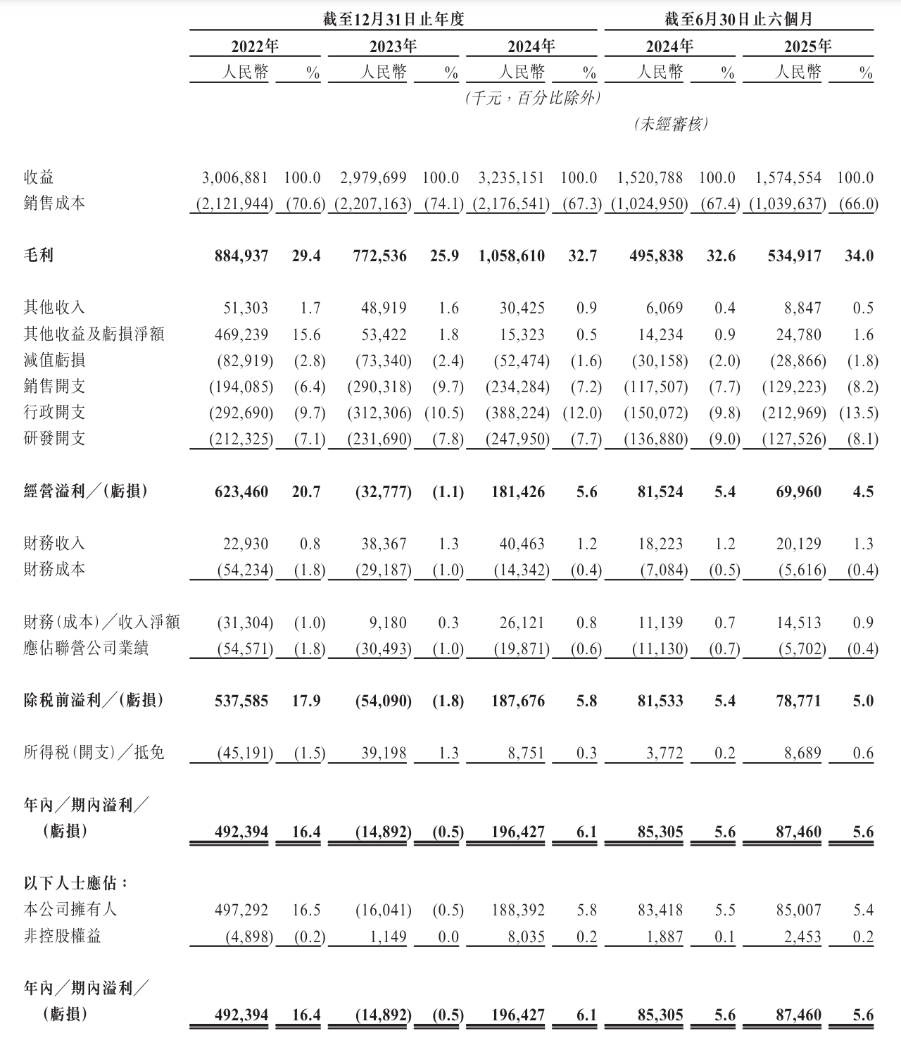 財(cái)務(wù)數(shù)據(jù)顯示,漢得信息近三年?duì)I收呈現(xiàn)波動(dòng)上升態(tài)勢(shì)。2022年至2024年分別實(shí)現(xiàn)營業(yè)收入30億元、29.8億元和32.35億元,其中2024年?duì)I收同比增長8.56%。同期毛利分別為8.85億元、7.7億元和10.59億元,對(duì)應(yīng)毛利率從29.4%降至25.9%后回升至32.7%。經(jīng)營利潤方面,公司經(jīng)歷2023年3278萬元虧損后,2024年實(shí)現(xiàn)1.81億元盈利,經(jīng)營利潤率相應(yīng)從-1.1%恢復(fù)至5.4%。期內(nèi)利潤表現(xiàn)與經(jīng)營利潤趨勢(shì)一致,2024年錄得1.96億元凈利潤,期內(nèi)利潤率達(dá)6.1%。