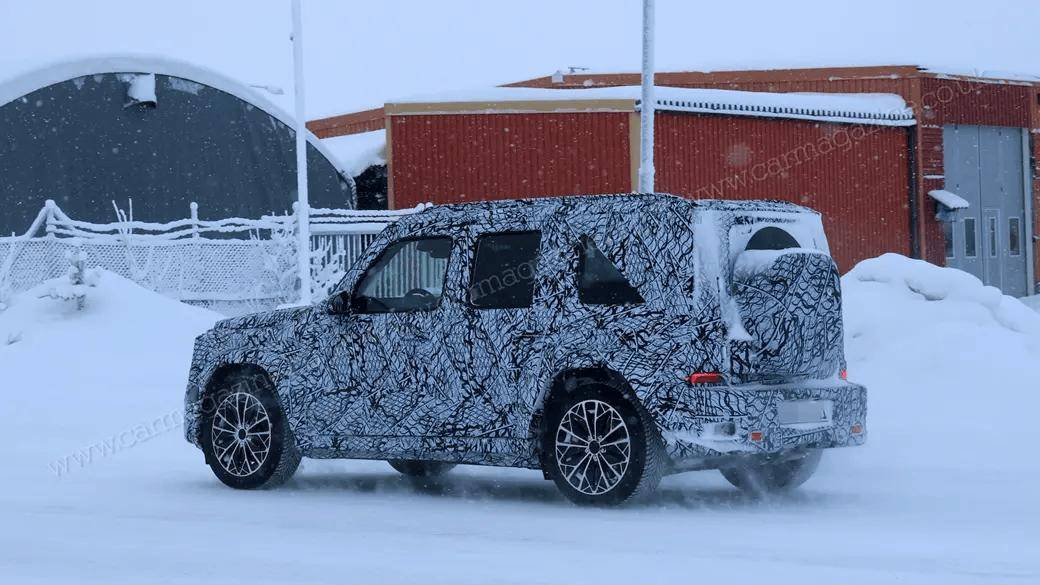近日,外媒Car Magazine曝光了一組奔馳全新小型四驅SUV“小G”的寒區測試諜照。盡管車身仍被嚴密偽裝,但方正硬朗的整體輪廓已清晰可見,展現出與經典G級一脈相承的設計語言。