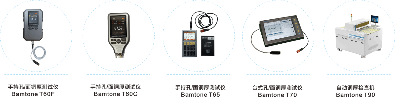 銅厚測試儀Bamtone T系列:替代進口高精度銅厚測量設備,確保PCB等導電性能。產品線覆蓋手持、臺式機和自動化銅厚測量多種類型。其中,Bamtone T60系列是由班通科技自主研發推出的國內首款國產替代手持式銅厚測試儀,操作界面友好,精度高,性能媲美乃至超過日、美等國際品牌。