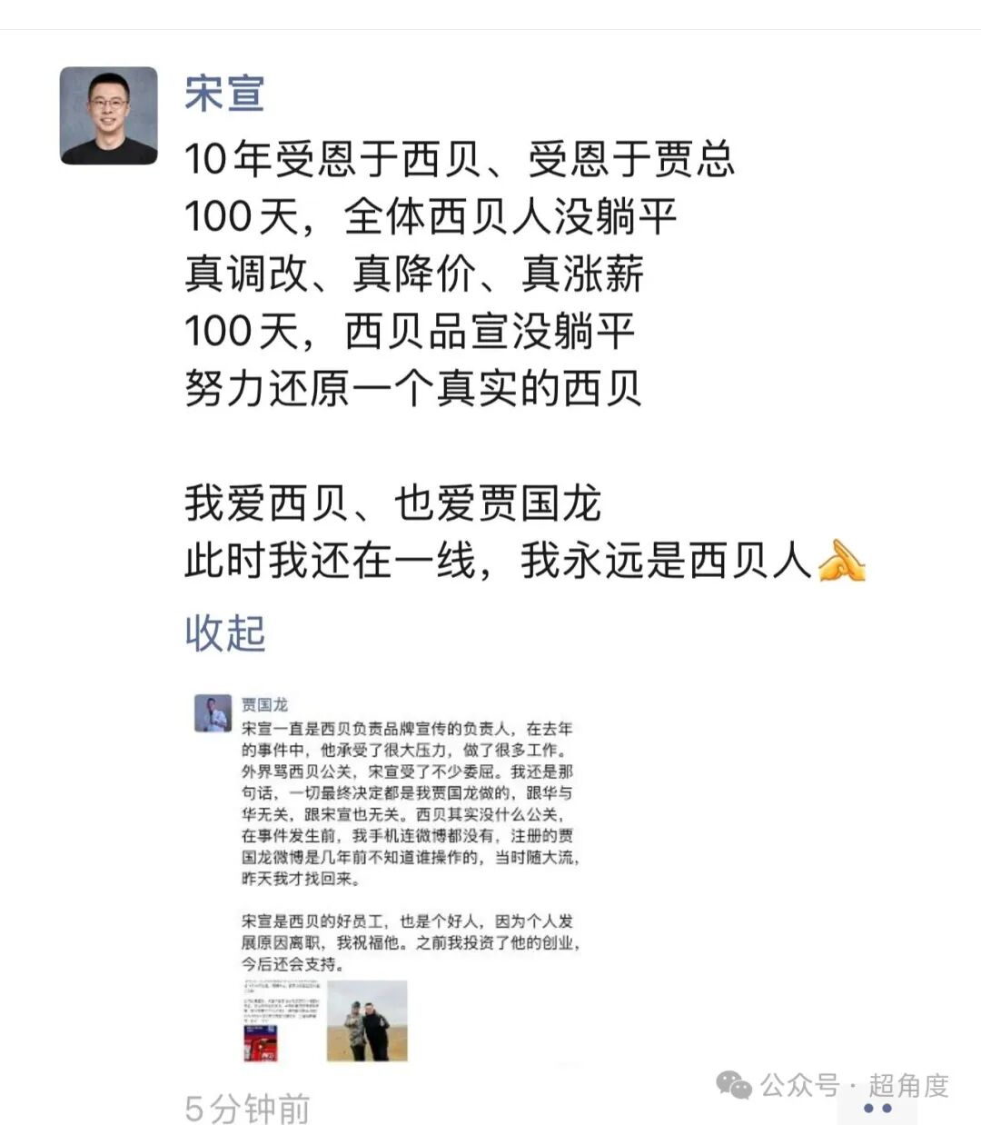 西貝品牌宣傳負責人宋宣離職,賈國龍發聲力挺:他承受諸多委屈是好員工