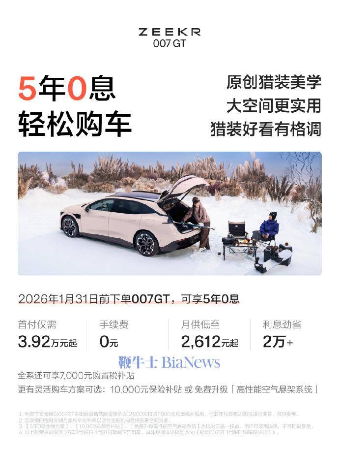 定位獵裝轎跑的極氪007GT則展現了更鮮明的運動屬性。該車型計劃于2026年1月率先登陸歐洲市場,國內版本將提供后驅單電機(最大功率310kW)與雙電機四驅(綜合功率475kW,峰值扭矩710N·m)兩種動力配置。車身尺寸與極氪007保持一致,但通過獵裝造型設計實現了更低的視覺重心與更優的空氣動力學表現。核心技術層面,極氪007GT基于800V碳化硅平臺打造,搭載雙Orin-X芯片(算力508TOPS)與千里浩瀚智駕H7方案,全系標配激光雷達,支持無圖城市NZP導航輔助駕駛及全場景智能泊車功能,智能化水平達到行業領先梯隊。