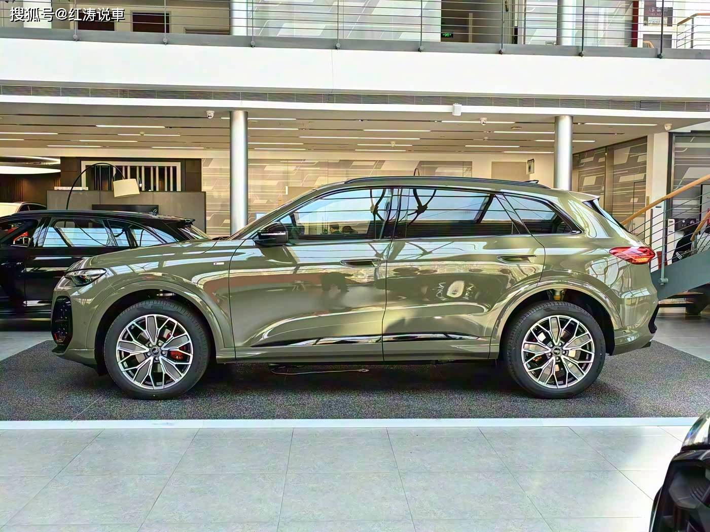 在外觀設計上,全新奧迪Q5L相較于前代車型,車頭部分顯得更為飽滿且富有力量感。大尺寸的八邊形進氣格柵搭配矩陣式LED大燈,不僅提升了車輛的辨識度,更賦予了前臉強烈的視覺沖擊力。車身側面線條流暢,車頂線條在后部微微下滑,配合上揚的腰線,營造出一種蓄勢待發的運動姿態。新車還提供了黑色行李架、半隱藏式門把手、黑色外后視鏡等個性化配置,滿足消費者多樣化的審美需求。