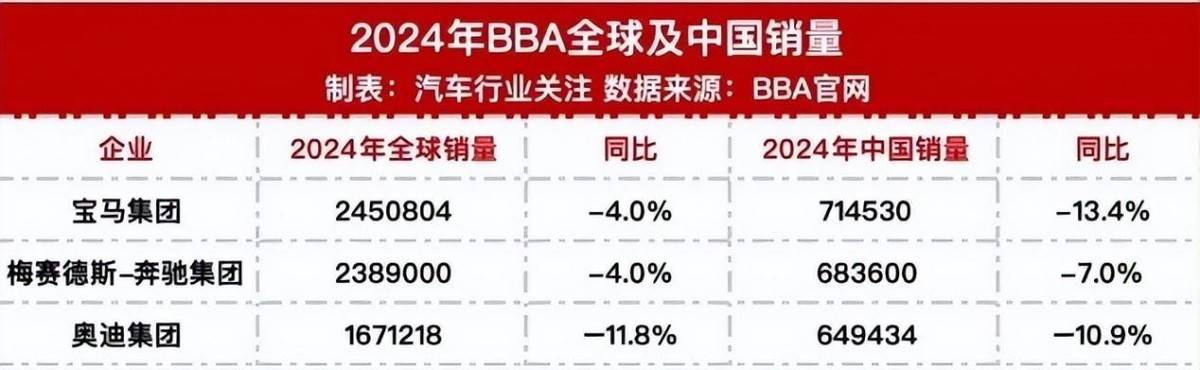 當17萬元的寶馬、19萬元的奧迪、21萬元的奔馳開始出現在銷售展廳,傳統豪華車市場的價格體系正經歷前所未有的震蕩。這場由國產新能源車發起的"價值革命",不僅讓BBA(寶馬、奔馳、奧迪)集體陷入銷量下滑的困境,更迫使這些百年品牌重新定義"豪華"的內涵。數據顯示,2025年BBA在中國市場銷量同比下滑均超5%,其中寶馬中國全年銷量62.55萬輛,第四季度單月銷量僅16萬輛,同比跌幅達16%。