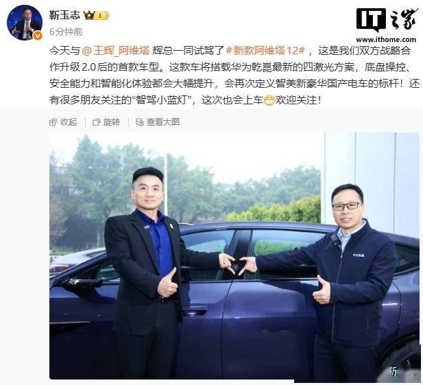 華為靳玉志與阿維塔董事長試駕新款阿維塔12,搭載四激光方案再樹豪華電車新標桿