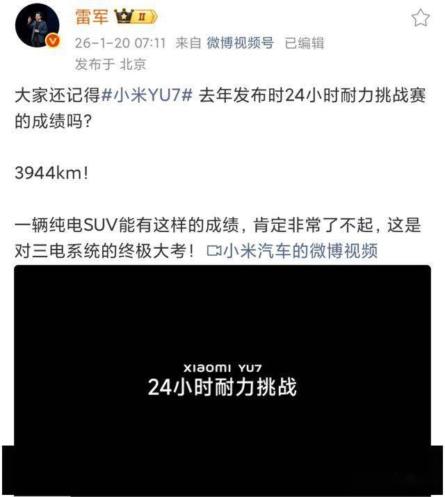 “純電SUV能跑出這樣的成績,確實令人驚嘆!”雷軍的一句感慨,讓小米YU7在24小時耐力挑戰(zhàn)賽中創(chuàng)下的3944公里紀(jì)錄再次成為新能源領(lǐng)域的焦點。在行業(yè)普遍面臨“續(xù)航虛標(biāo)”“高速掉電”質(zhì)疑的背景下,這款車以超越奔馳CLA純電原型車和保時捷Taycan的實測表現(xiàn),用硬核數(shù)據(jù)證明:純電技術(shù)的極限,遠(yuǎn)比想象中更具突破性。而這一成績的背后,是小米三電系統(tǒng)在極端條件下的全面勝利。