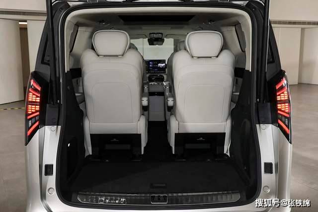 外觀方面,銀河V900延續了家族式設計語言,前臉采用分體式燈組布局,上段為三段式橫貫燈帶,下段集成雙透鏡遠近光燈,搭配大面積橫向鍍鉻中網,營造出強烈的視覺層次感。車身側面以平直線條勾勒出方正輪廓,5360mm的車長與3200mm軸距為車內空間提供保障,雙側電動滑門、隱藏式門把手及多輻式輪轂進一步強化科技感與實用性。尾部設計同樣以垂直線條為主,貫穿式尾燈兩側延伸出發散式造型,點亮后辨識度極高。
