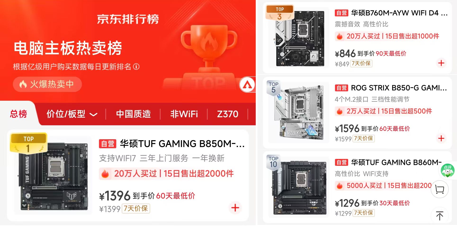 上述四款華碩主板配置全面、性能可靠,在京東熱賣榜上名列前茅,是玩家打造游戲致勝主機的不二之選。
