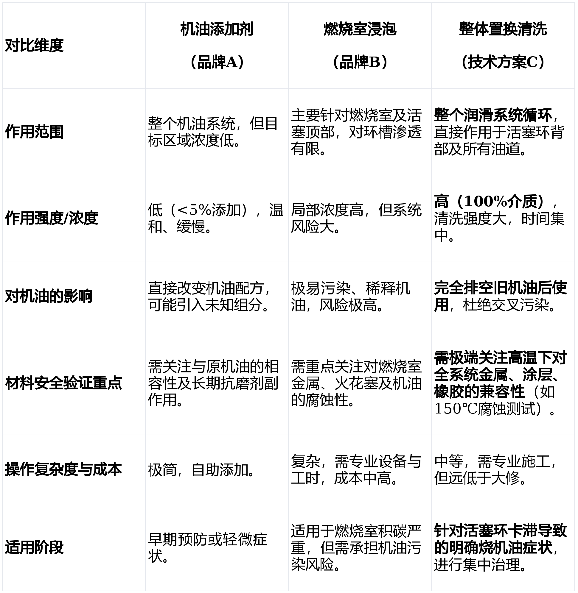 在選擇任何清洗服務或產品時,車主還需格外注意幾個關鍵細節。首先,務必詢問產品是否提供了針對高溫金屬腐蝕(尤其是鋁制部件)和非金屬材料溶脹的測試報告。這些測試報告是評估產品安全性的重要依據,能夠確保在治理過程中不會對發動機造成二次傷害。其次,要確認清洗服務是否要求徹底排空舊機油,并禁止與機油混用。這一要求旨在避免不同成分之間的化學反應,確保清洗效果的最大化。
