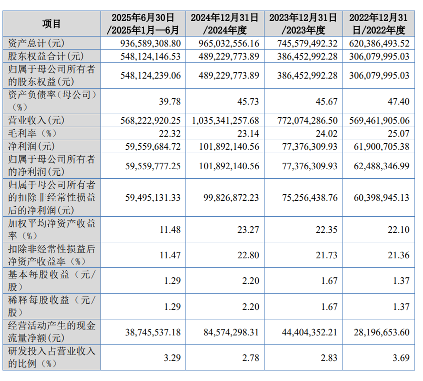 財務數(shù)據(jù)顯示,拓普泰克在2022年至2025年上半年的報告期內(nèi)保持穩(wěn)健增長態(tài)勢。營業(yè)收入從5.69億元逐步攀升至10.35億元,2025年上半年實現(xiàn)5.68億元;凈利潤同步提升,從6190.07萬元增長至1.02億元,2025年上半年達5955.97萬元。經(jīng)營活動產(chǎn)生的現(xiàn)金流凈額也呈現(xiàn)持續(xù)改善趨勢,反映出公司較強的盈利質(zhì)量和運營效率。