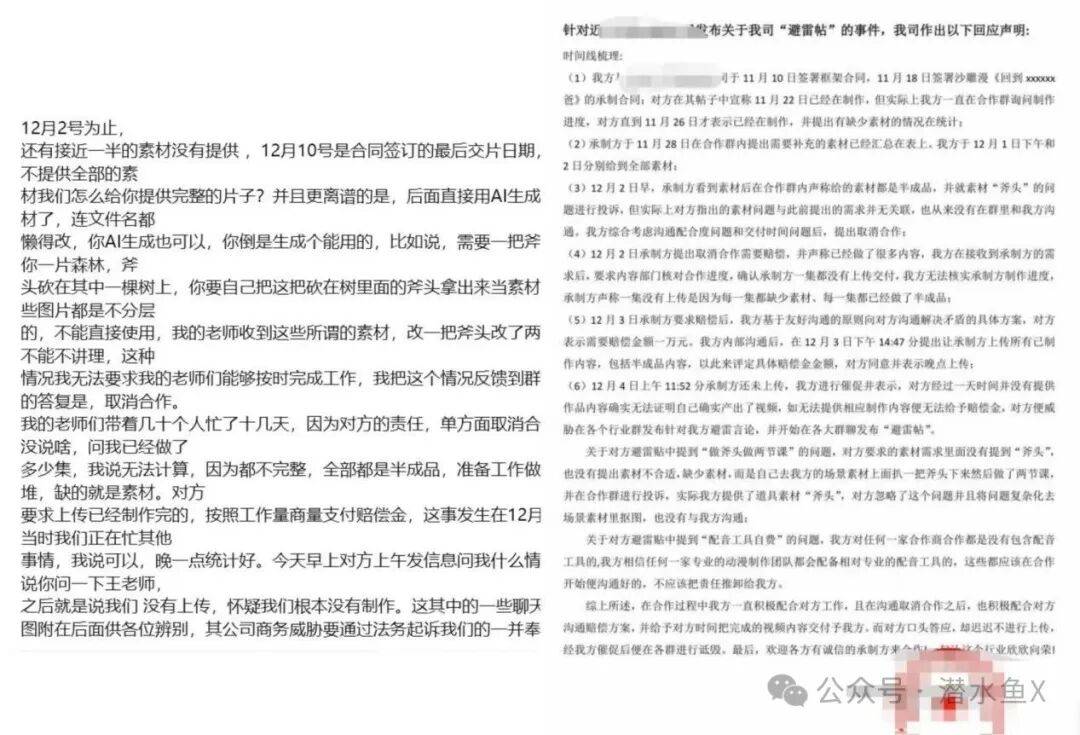 與頭部公司的風光形成鮮明對比的是,大量中小創作者正在為生存掙扎。小紅書平臺上,行運文化控訴甲方汕頭稻谷文化拖欠稿酬、劇本審核通過率低且單方面解約的帖子引發關注。更早之前,某承制方也曾曝光廣東某公司在合作中長期拖延素材交付,提供的AI生成圖片存在嚴重技術缺陷(如斧頭嵌在森林里的不分層圖像),最終單方面取消合作。這些案例揭示出一個殘酷現實:在行業規模突破200億元、播放量翻倍增長的繁榮表象下,大量從業者仍在為幾百元收益或幾千元稿酬奔波。有創作者透露,其制作的漫劇播放量達300萬次,收益卻僅有500元,這種收益與投入的嚴重失衡,讓“風口論”顯得格外諷刺。