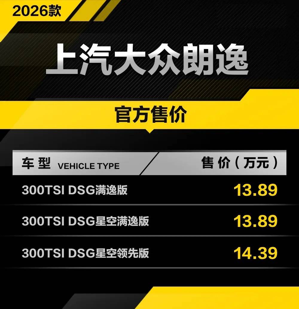 上汽大眾近日低調推出三款朗逸改款車型,官方指導價鎖定在13.89萬至14.39萬元區間。在新能源車型加速滲透市場的背景下,這款傳統燃油車常青樹的定價策略引發行業關注。盡管終端優惠尚未公布,但橫向對比同級競品,其價格競爭力已面臨顯著挑戰。