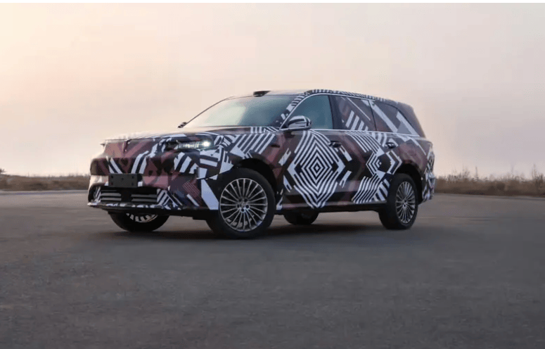 車身設計方面,新車采用超過5.3米的修長比例,配合平直硬朗的腰線營造出強烈的力量感。車頂配備的激光雷達裝置與封閉式前臉形成呼應,分體式大燈組通過銳利的線條切割,塑造出極具辨識度的前臉造型。側面隱藏式門把手與低風阻輪轂設計,進一步強化了整車的科技屬性。