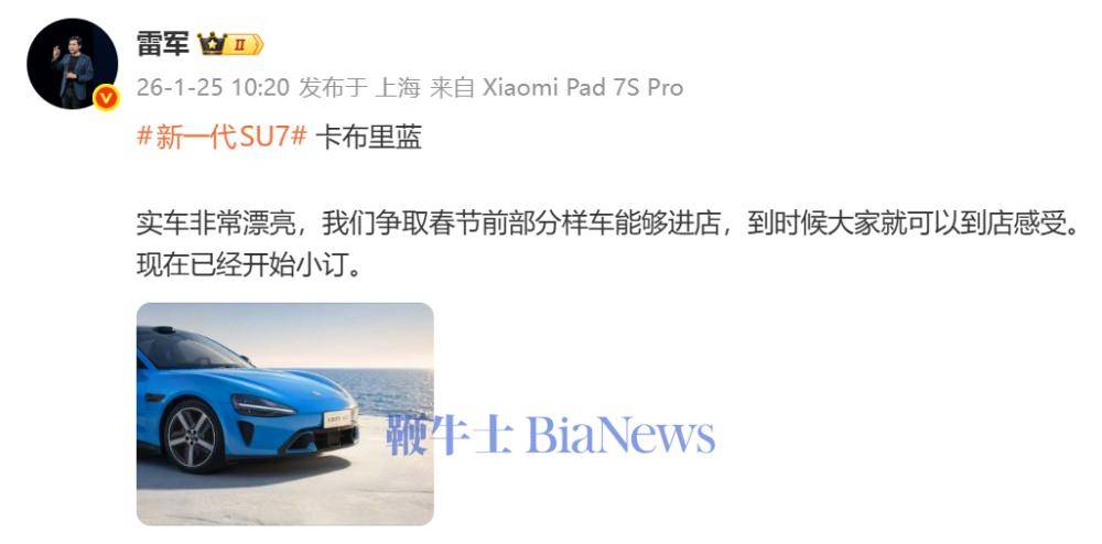 在外觀設(shè)計(jì)方面,雷軍特別提到新一代SU7新增的卡布里藍(lán)配色,稱其"實(shí)車(chē)效果非常漂亮"。這一細(xì)節(jié)披露進(jìn)一步激發(fā)了消費(fèi)者對(duì)新車(chē)顏值的期待。隨著上市時(shí)間臨近,市場(chǎng)對(duì)小米汽車(chē)能否在競(jìng)爭(zhēng)激烈的新能源賽道再創(chuàng)佳績(jī)保持高度關(guān)注。