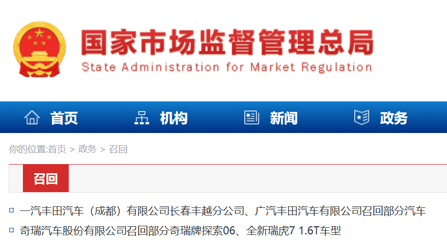 近日,國家市場監督管理總局對外披露了最新的汽車召回信息。一汽豐田汽車(成都)有限公司長春豐越分公司(受一汽豐田汽車(成都)有限公司委托授權)以及廣汽豐田汽車有限公司,依據《缺陷汽車產品召回管理條例》和《缺陷汽車產品召回管理條例實施辦法》的相關規定,向國家市場監督管理總局提交了召回計劃。