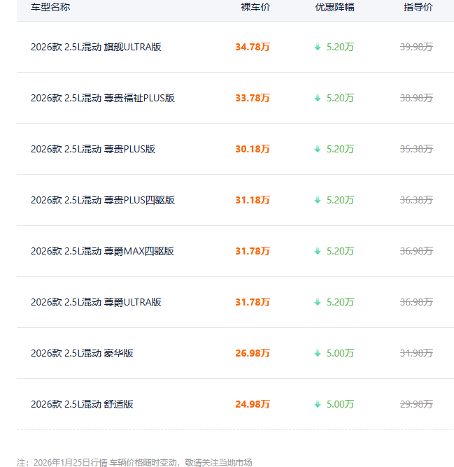 近日,一汽豐田格瑞維亞在中大型MPV市場掀起波瀾,宣布全系車型最高直降5.2萬元,其中2026款舒適版起售價降至24.78萬元,首次跌破25萬元門檻。這一大幅優惠舉措打破了該車型長期以來的“穩健定價”策略,迅速成為行業熱議話題,也引發消費者廣泛關注。
