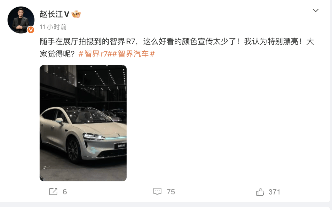 在汽車消費市場中,顏色對車型顏值和消費者購買決策的影響正日益凸顯。近期,智界R7執行董事趙長江在微博上感慨,該車型一些好看的顏色宣傳不夠,這一言論引發了廣泛關注,也讓我們將目光聚焦到汽車配色這一關鍵因素上。