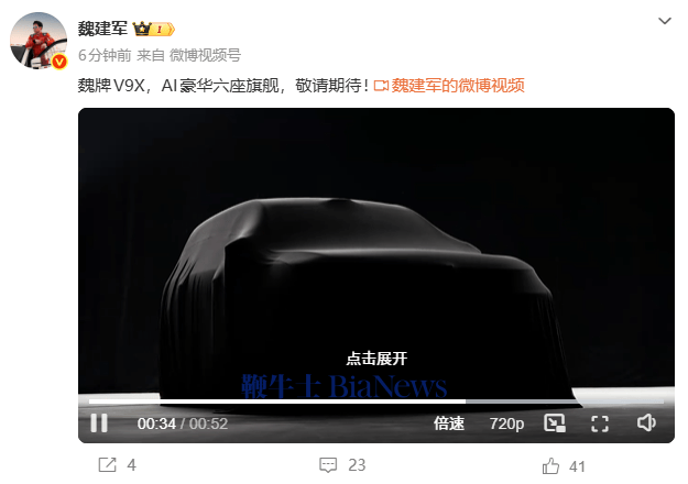長城汽車董事長魏建軍近日通過社交媒體平臺宣布,旗下高端品牌魏牌即將推出一款全新車型——V9X。這款被定位為“AI豪華六座旗艦款”的新車,憑借其前沿技術配置與平臺架構,迅速成為汽車行業關注的焦點。