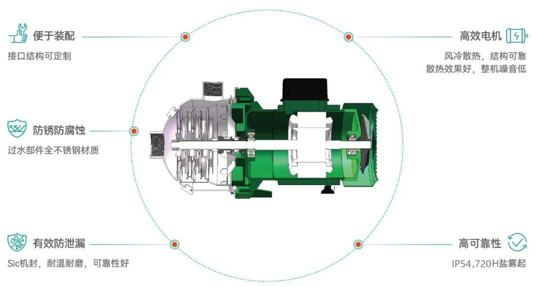 徹底杜絕泄漏采用硬度高達 HV2000 以上的碳化硅(SiC)硬質機械密封,耐磨性能是石墨密封的 5 倍;搭配雙端面冷卻設計,在 - 40℃~60℃寬溫環境下始終保持密封性能,完美解決溫差劇變導致的泄漏難題。