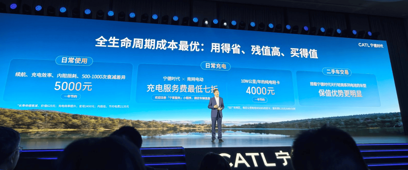 使用成本降低是寧德時代另一重點突破方向。針對無人物流車高頻使用場景,寧德時代推出行業首款高溫超充動力電池解決方案。該方案通過自冷卻無水冷技術,在實現快充功能的同時,省去了傳統液冷系統,大幅降低整車空間占用和成本。技術總工鐘瑞坤透露,寧德時代正探索“換電+無人物流”模式,通過24小時無人化運營和智能能量管理,進一步提升運營效率。與南方電網等能源企業的合作,以及換電業務的布局,正在為用戶帶來充電成本下降和資產配置靈活性的雙重紅利。商用車終端業務總監任文磊強調,換電版車型支持可充可換模式,用戶可根據運營場景自由選擇補能方式,進一步控制成本。
