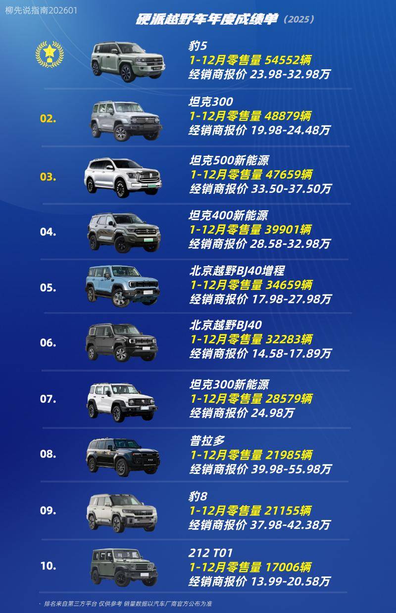 市場格局的重塑尤為顯著。長城坦克、比亞迪方程豹等品牌憑借對用戶需求的精準把握,推出多款兼具越野性能與城市適用性的產品。以方程豹豹5為例,其搭載的插電式混合動力系統不僅將百公里油耗降至傳統燃油車的一半以下,更通過電驅系統優化了低速扭矩輸出,顯著提升了復雜路況的通過能力。坦克300則通過智能四驅系統與舒適化底盤調校的平衡,成功吸引大量都市年輕消費者,月均銷量持續突破萬輛。