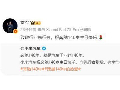 其中,小米汽車官方的祝福尤為引人注目。小米汽車在官方發(fā)文中表示:“奔馳140年,就是汽車工業(yè)的140年。小米汽車祝奔馳140歲生日快樂,向先行者致敬,有幸與君同行。”這一番話語,既體現(xiàn)了小米汽車對奔馳品牌歷史地位的認(rèn)可,也展現(xiàn)了其作為行業(yè)新秀的謙遜與進(jìn)取。