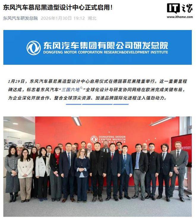 1月29日,德國慕尼黑迎來了一場汽車行業的重要活動——東風汽車慕尼黑造型設計中心正式啟用。這一舉措標志著東風汽車“三國六地”全球化設計與研發協同網絡在歐洲邁出了關鍵一步,為其全球化戰略布局增添了重要砝碼。