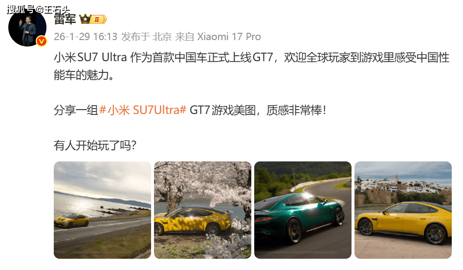 當(dāng)全球頂級賽車游戲《GT賽車》迎來一位來自東方的“新面孔”時,玩家社區(qū)瞬間沸騰了——小米SU7 Ultra,這臺印有“XIAOMI”標(biāo)識的電動性能車,以首款中國量產(chǎn)車的身份正式入駐游戲,成為虛擬賽道上最受矚目的存在。海外論壇上,玩家們爭相分享試駕體驗,有人驚嘆于其精準(zhǔn)的操控反饋,有人則被充滿未來感的設(shè)計語言所吸引,這場跨越虛擬與現(xiàn)實(shí)的汽車文化碰撞,正在改寫全球玩家對中國制造的認(rèn)知。