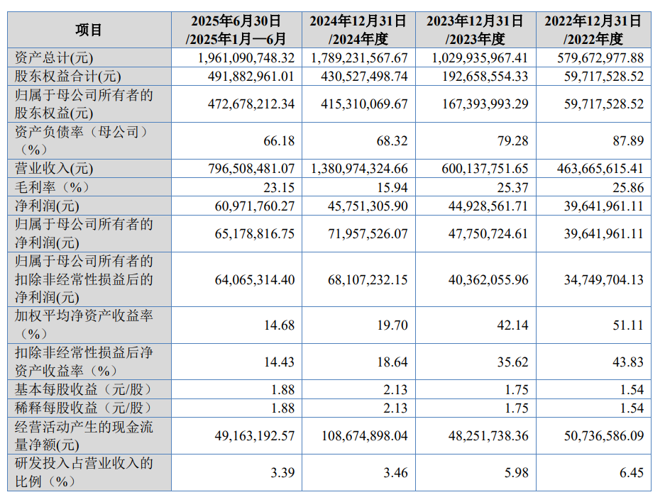 新富科技坐落于安徽省安慶市,其核心產品涵蓋電池液冷管、電池液冷板等關鍵部件。財務數據顯示,2022年至2025年上半年,公司營業收入呈現顯著增長態勢,分別為4.64億元、6億元、13.81億元及7.97億元;同期凈利潤分別為3964.2萬元、4492.86萬元、4575.13萬元及6097.18萬元,盈利能力持續增強。