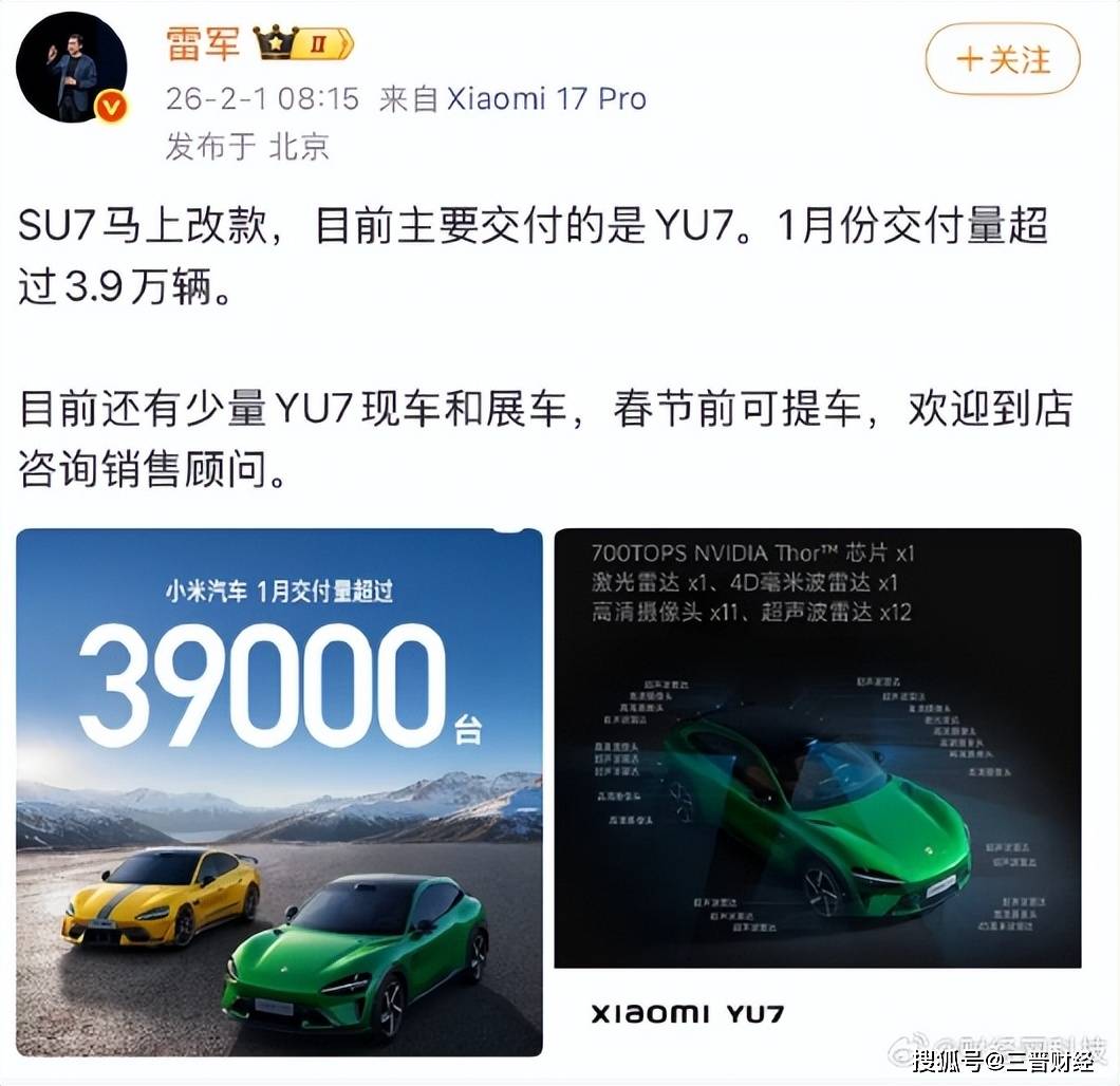 值得關注的是,理想汽車的產品交付結構正在發生變化。小米集團創始人雷軍在社交平臺回應相關話題時透露,小米SU7車型即將迎來改款升級,當前交付重點已轉向YU7車型。這一動態反映出新能源汽車市場競爭格局的快速演變,頭部企業正通過產品迭代與戰略調整鞏固市場地位。