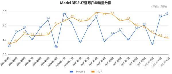 市場格局正在發(fā)生深刻變化。乘聯(lián)會數(shù)據(jù)顯示,小米SU7在2025年以258,164輛的年度交付量超越特斯拉Model 3,成為中國豪華電動汽車轎車市場銷量冠軍。相比之下,特斯拉Model 3同期交付量為200,361輛,同比增長13%的增速明顯落后于小米。這是小米SU7首次在全年銷量上實(shí)現(xiàn)對Model 3的超越,領(lǐng)先幅度達(dá)29%。