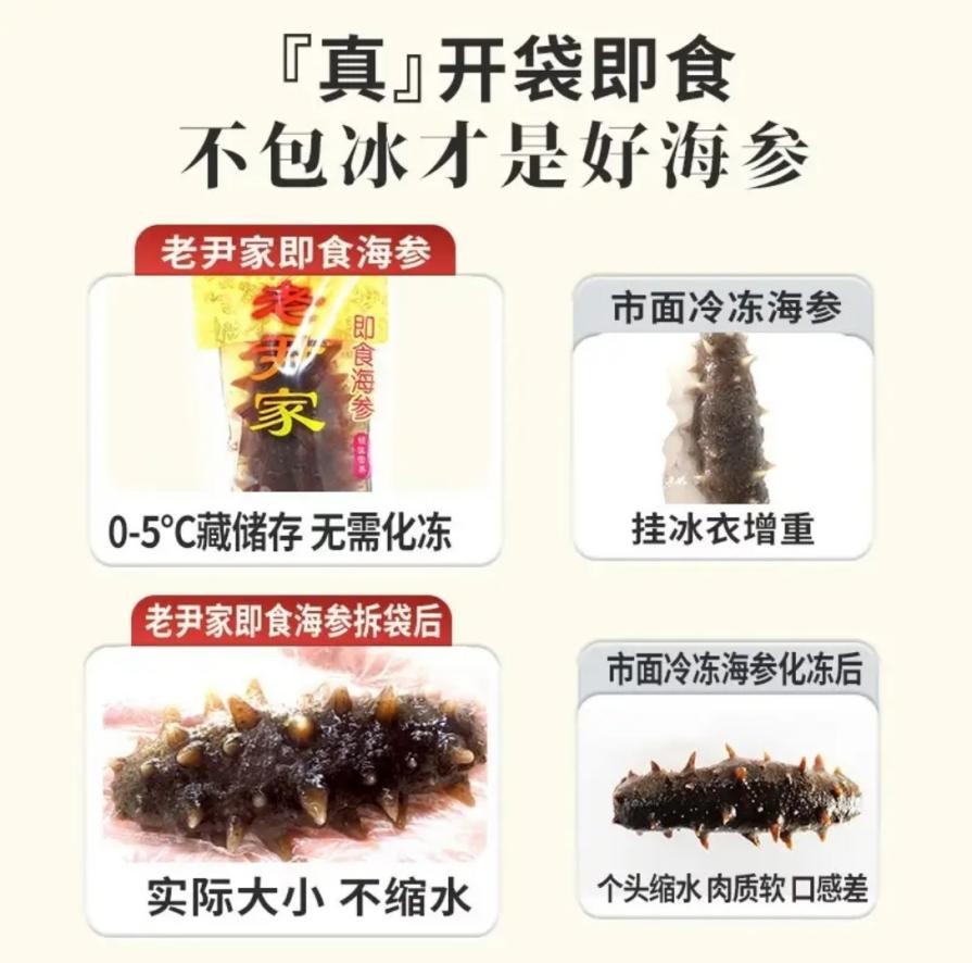 作為青島當?shù)睾堫^企業(yè),老尹家海參深耕海產(chǎn)品養(yǎng)殖行業(yè)20余年,其即食海參來自國家級海洋牧場,通過創(chuàng)新工藝多重鎖鮮,最大程度保留營養(yǎng)成分,且不含任何添加劑,保障原汁原味、正宗地道。與市面上的冷凍海參相比,老尹家的特色水袋裝海參食用方便,無需化凍后加熱,撕開袋子就可以直接吃,且個頭不縮水,口感鮮美有嚼勁。