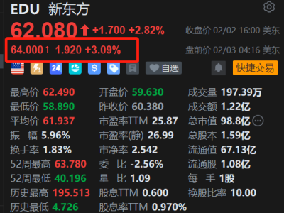美股異動丨新東方盤前漲3% H股今日大漲6.4% 獲多家機構唱好