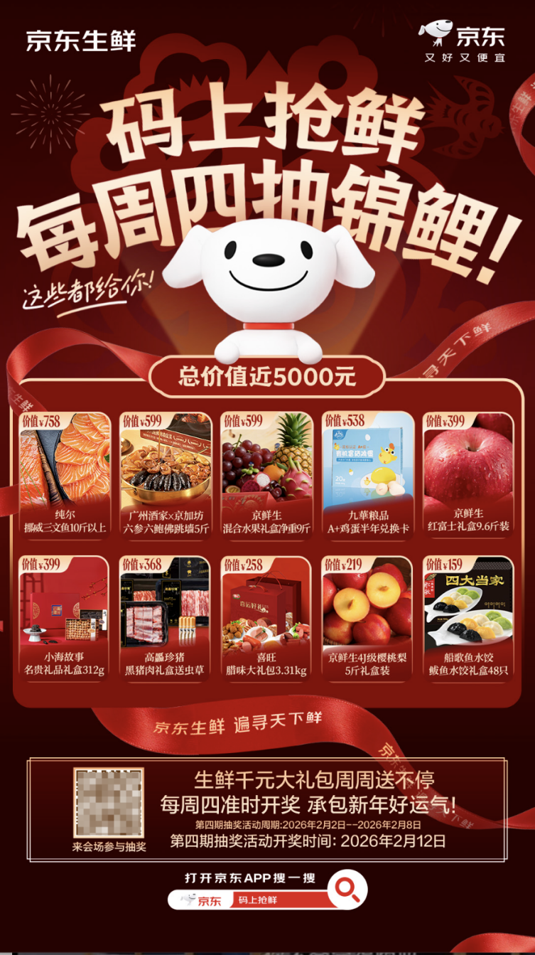 從懸掛屋檐的傳統臘味,到跨越山海的全球鮮貨,年貨形態隨時代演進,但團圓、分享與祝福的內核始終不變。京東生鮮憑借深刻的消費洞察、超級供應鏈能力、創意互動玩法與安心可靠的服務保障,不僅提供琳瑯滿目的生鮮好禮,更引領品質生活、輕松過節的新時代解決方案。這個春節,選擇京東生鮮,就是選擇“真鮮真便宜”的實在心意,讓全球風味點亮年貨餐桌,讓真摯情感借至臻鮮味溫暖傳遞。
