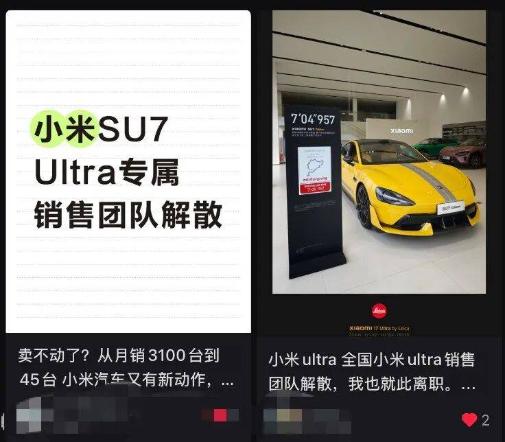 部分原團隊成員選擇離職或轉崗至SU7等主流車型銷售線。一位轉崗銷售透露,原團隊成員專業背景較強,但車型定位與市場需求存在錯配。多家門店銷售證實,目前SU7 Ultra的接待流程已與其他車型無異,普通銷售均可完成全流程服務。