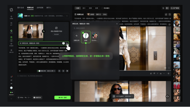 可靈視頻3.0 全球首創“圖生視頻 + 主體參考”技術