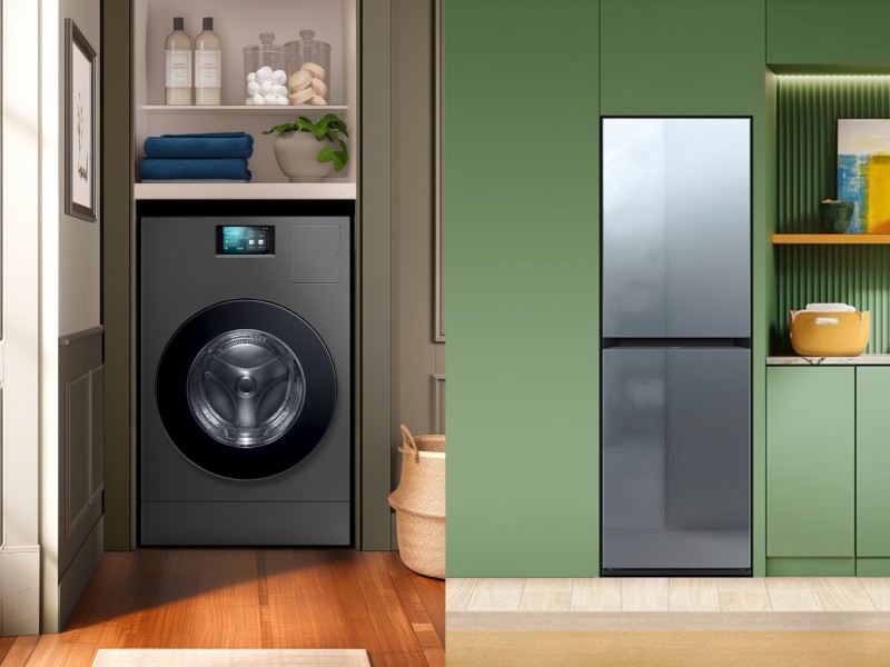 左為三星AI神 黑鉆熱泵洗烘旗艦,右為三星AI神 黑鉆衣物護(hù)理機(jī)