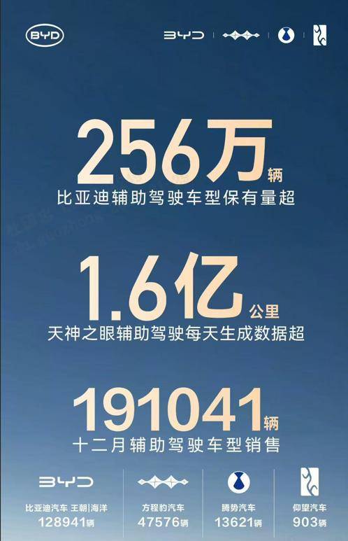 智能化領(lǐng)域的技術(shù)突破成為銷(xiāo)量增長(zhǎng)的第二引擎。截至2025年12月,比亞迪輔助駕駛車(chē)型保有量突破256萬(wàn)輛,日均產(chǎn)生1.6億公里駕駛數(shù)據(jù),用戶(hù)激活率高達(dá)94.13%。其自主研發(fā)的“天神之眼”智駕系統(tǒng)表現(xiàn)尤為亮眼:12月單月輔助駕駛車(chē)型銷(xiāo)量近19.1萬(wàn)輛,其中王朝&海洋系列貢獻(xiàn)12.89萬(wàn)輛;全年AEB自動(dòng)緊急剎車(chē)系統(tǒng)觸發(fā)933萬(wàn)次,配合泊車(chē)安全損失兜底承諾,徹底改變了消費(fèi)者對(duì)智駕技術(shù)的認(rèn)知。這項(xiàng)曾被視為“錦上添花”的功能,如今已成為用戶(hù)購(gòu)車(chē)決策的核心考量因素。