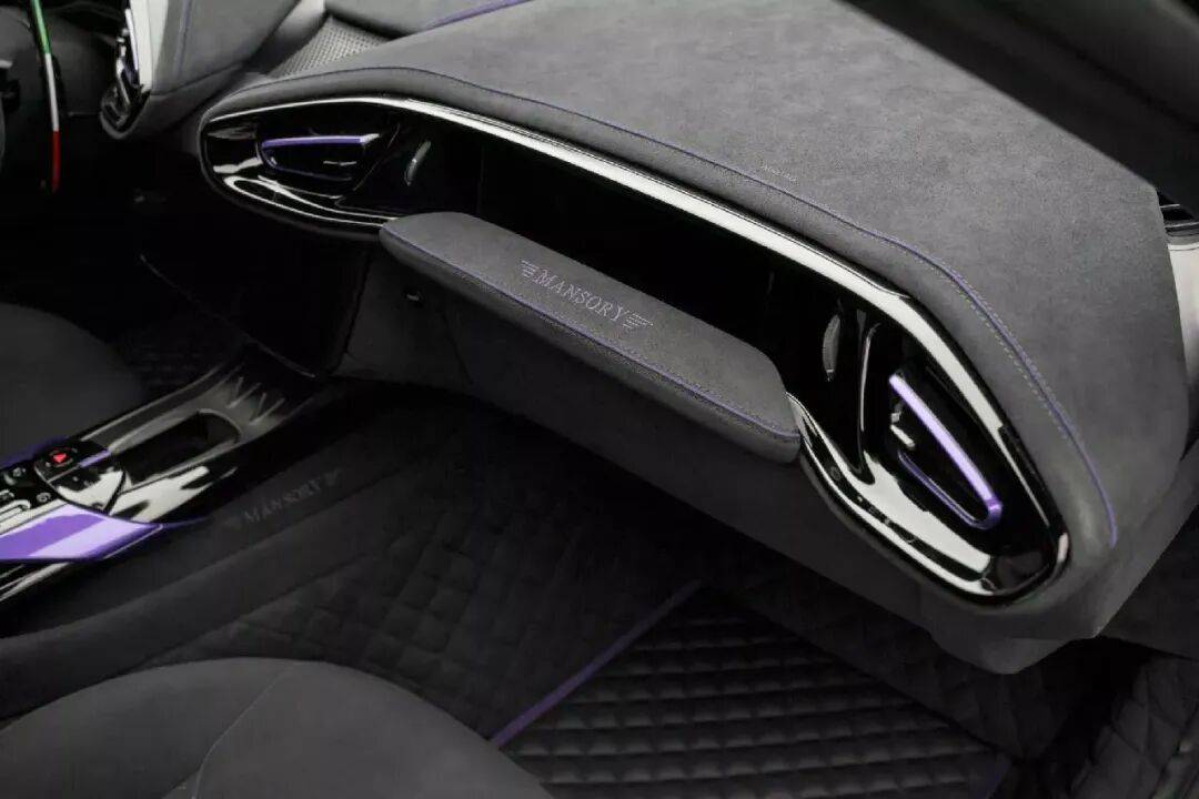 內(nèi)飾方面,邁莎銳同樣下足了功夫。整車座椅與內(nèi)飾板均被重新包覆以灰色Alcantara材質(zhì),表面帶有定制絎縫紋路,既提升了觸感又增添了豪華感。車門內(nèi)飾板配備了氛圍燈,可根據(jù)駕駛模式或個人喜好調(diào)節(jié)顏色,營造出不同的駕駛氛圍。客戶還可選擇任意顏色的真皮材質(zhì)作為替代,滿足個性化需求。車內(nèi)還嵌入了大量碳纖維飾板,搭配鋁合金踏板與印有邁莎銳品牌標(biāo)識的絎縫腳墊,進(jìn)一步提升了內(nèi)飾的質(zhì)感與辨識度。