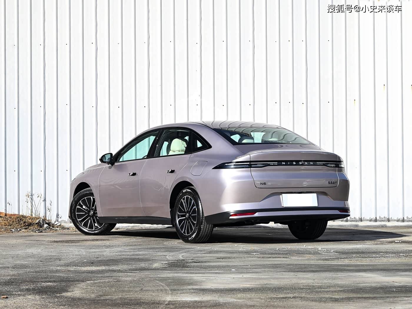 車身設(shè)計方面,N6以“低風(fēng)阻+大空間”理念打造修長輪廓。4831mm車長與2815mm軸距的組合已接近中型轎車標(biāo)準,為車內(nèi)空間奠定基礎(chǔ)。流暢的貫穿式腰線從車頭延伸至車尾,配合隱藏式門把手設(shè)計,在降低風(fēng)阻的同時強化科技感。C柱處的銳利三角窗與底部硬朗側(cè)裙形成動感對比,使車身姿態(tài)兼具優(yōu)雅與運動氣質(zhì)。車尾采用貫穿式LED尾燈組,300米可視距離與中央發(fā)光NISSAN標(biāo)識形成家族化視覺標(biāo)識,同色后保險杠與隱藏式排氣布局則進一步簡化尾部線條。
