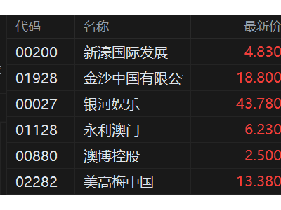 港股異動丨濠賭股集體活躍 新濠國際發展漲超6% 大摩料2月博彩收入增13%
