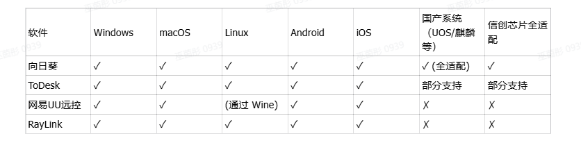 結(jié)論:向日葵在跨平臺,尤其是對國產(chǎn)信創(chuàng)操作系統(tǒng)和芯片的全棧適配方面最為全面深入;ToDesk和RayLink對主流平臺支持良好;UU遠控在Linux原生支持上稍有局限。