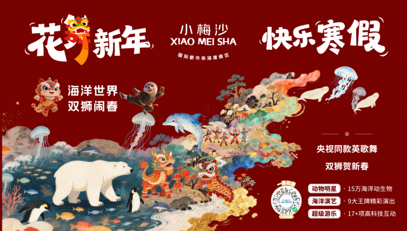 2026年春節(jié)及寒假期間,小梅沙(含小梅沙海洋世界、小梅沙海濱樂園)與深圳錦繡中華·民俗村聯(lián)合推出“海韻國潮”聯(lián)名通票低至258元起,購票游客可享包含小梅沙海洋世界、小梅沙海濱樂園、錦繡中華、中國民俗文化村“四園”一票通玩權(quán)益,門票多天有效,游客可靈活漫游。目前,“海韻國潮”寒假通票已在各大OTA平臺全線開售。