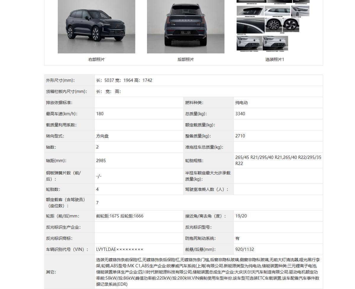沃爾沃正加速推進新能源戰略布局,其兩款純電旗艦車型EX90與ES90近日現身工信部第404批《道路機動車輛生產企業及產品公告》,標志著這兩款全球車型即將正式登陸中國市場。作為品牌電動化轉型的關鍵產品,新車在延續海外版設計語言的同時,針對中國消費者需求進行了多項適應性調整。